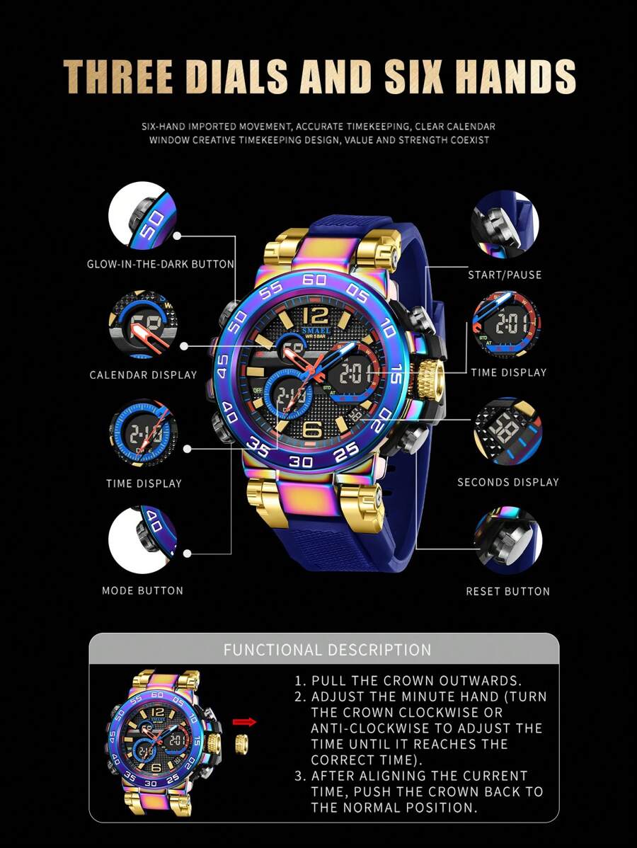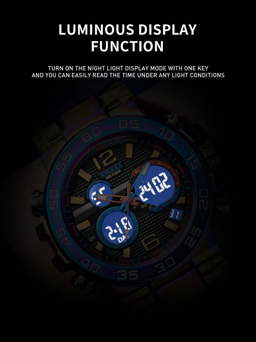 • Luminous Hands: High-contrast markers and hands for visibility in low-light environments.