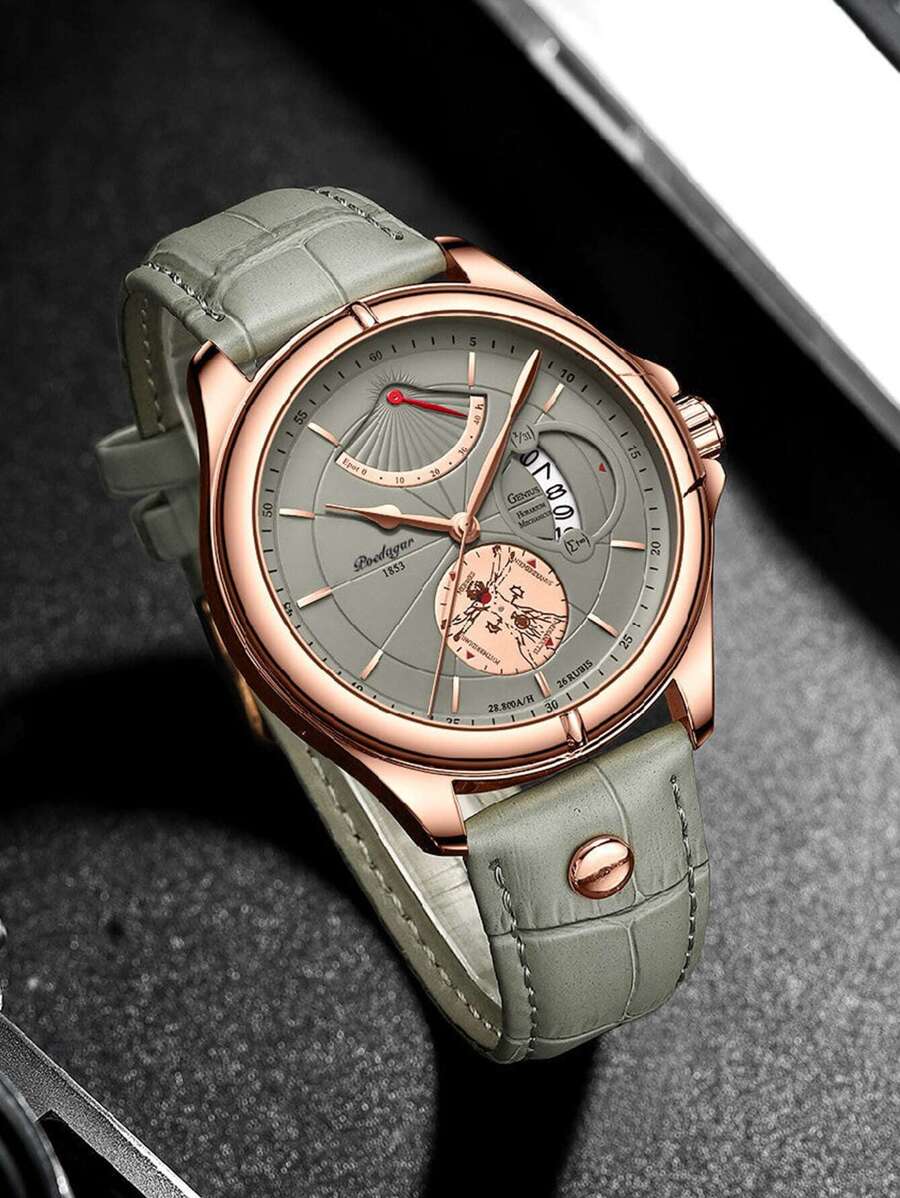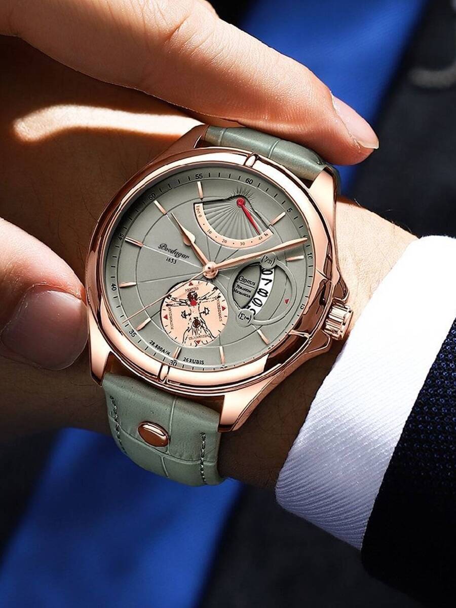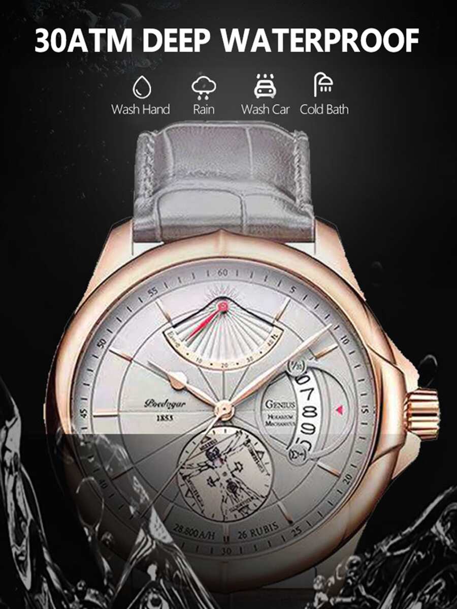 Multi-Function Movement: Includes a 1/100s stopwatch, auto-calendar (day/date/month), and daily alarm.