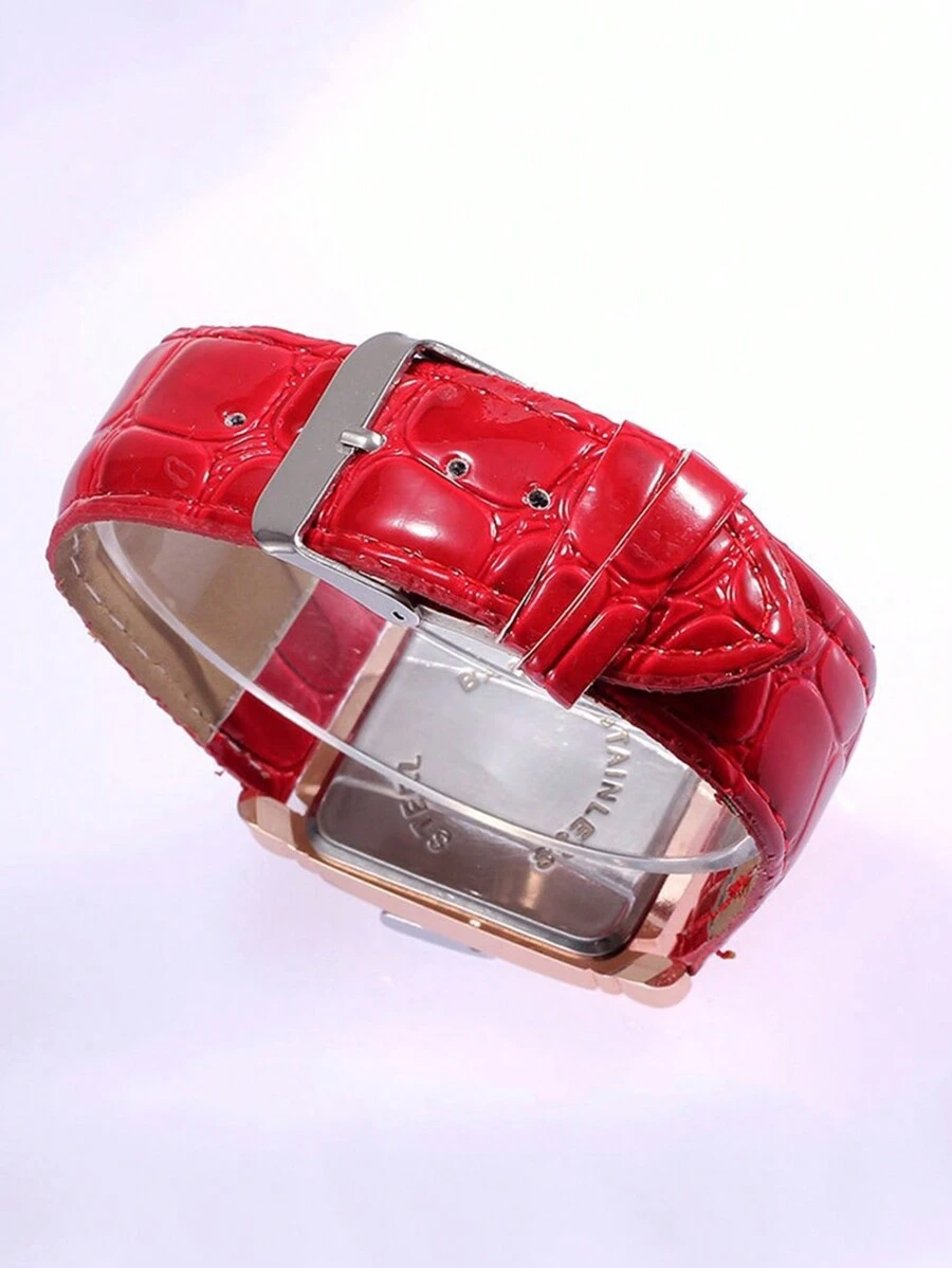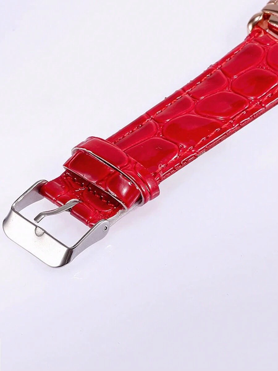 The watch is finished with a vibrant ruby red PU leather strap featuring a classic crocodile-grain texture and a secure pin-buckle clasp. Whether you’re dressing up for a formal event or adding a classic accent to your business attire, this minimalist quartz watch is a versatile staple for any jewelry collection.